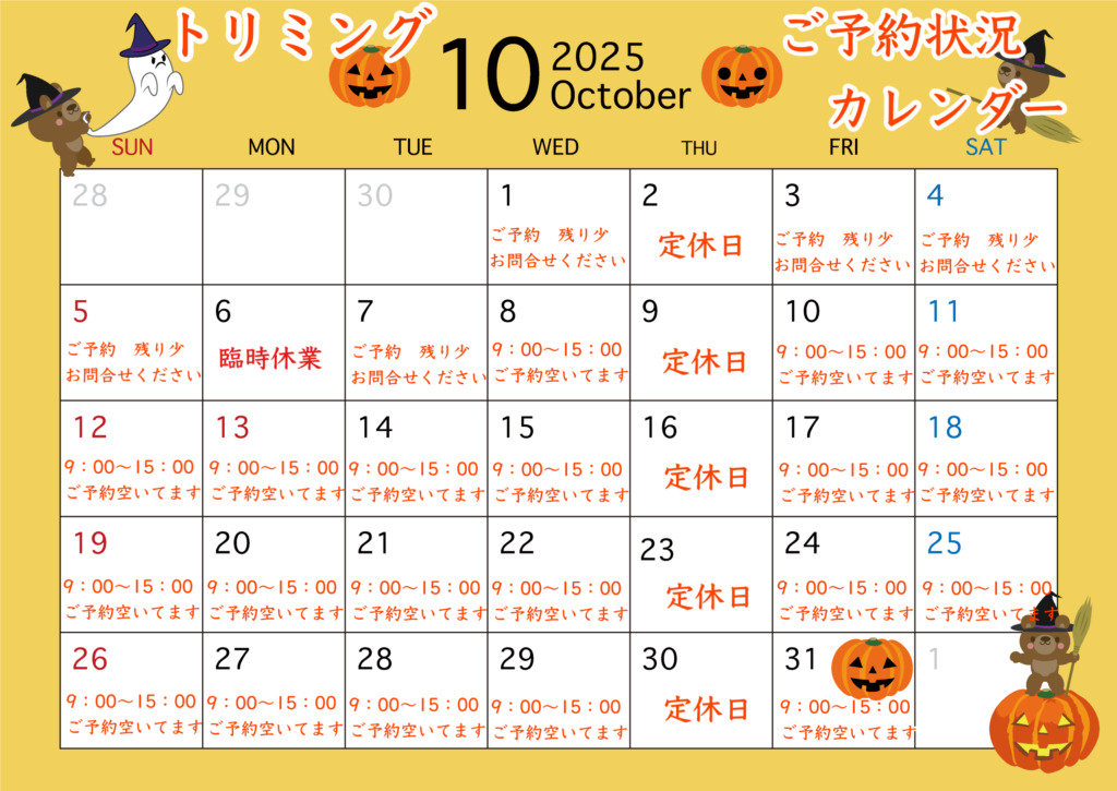 <ご予約>10月の空き状況