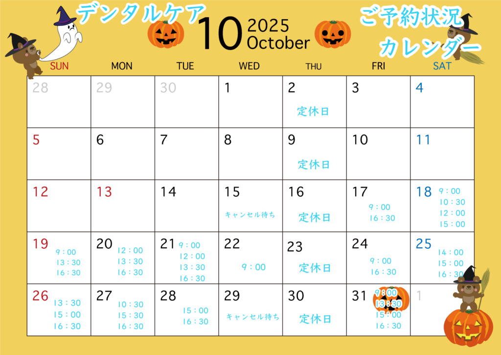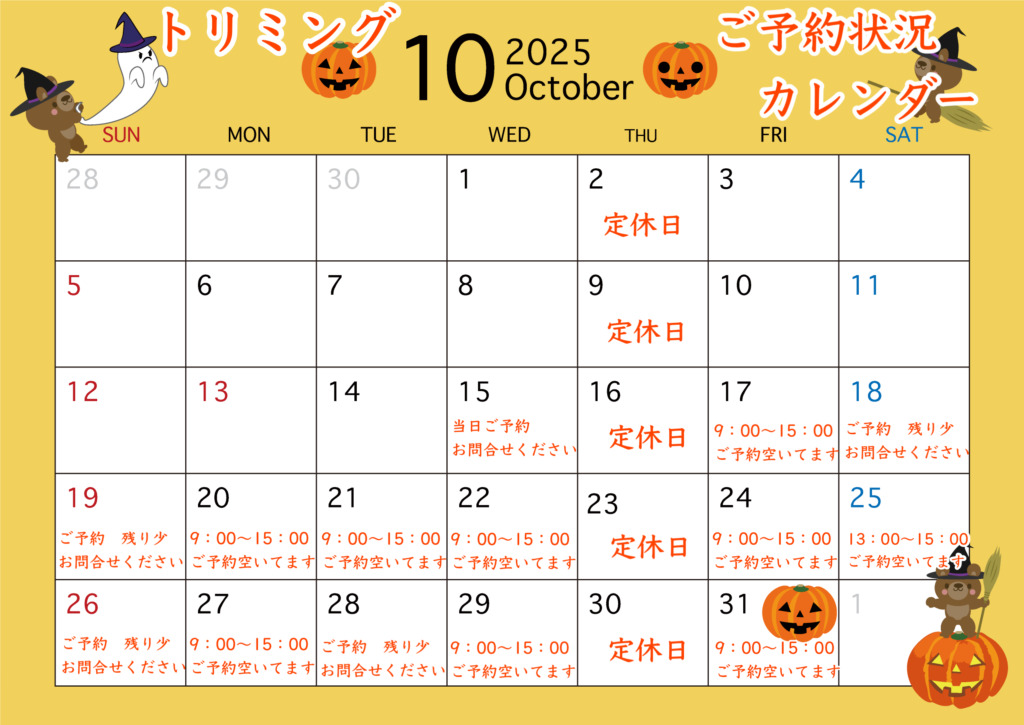 <ご予約>10月の空き状況