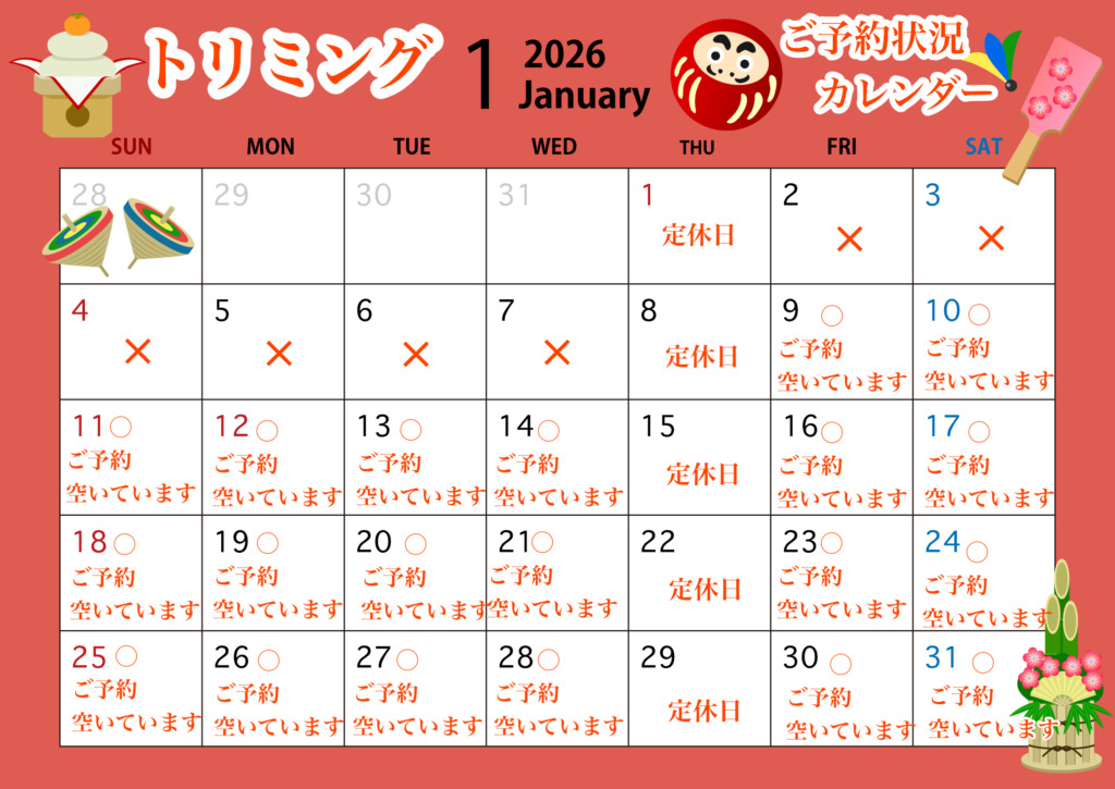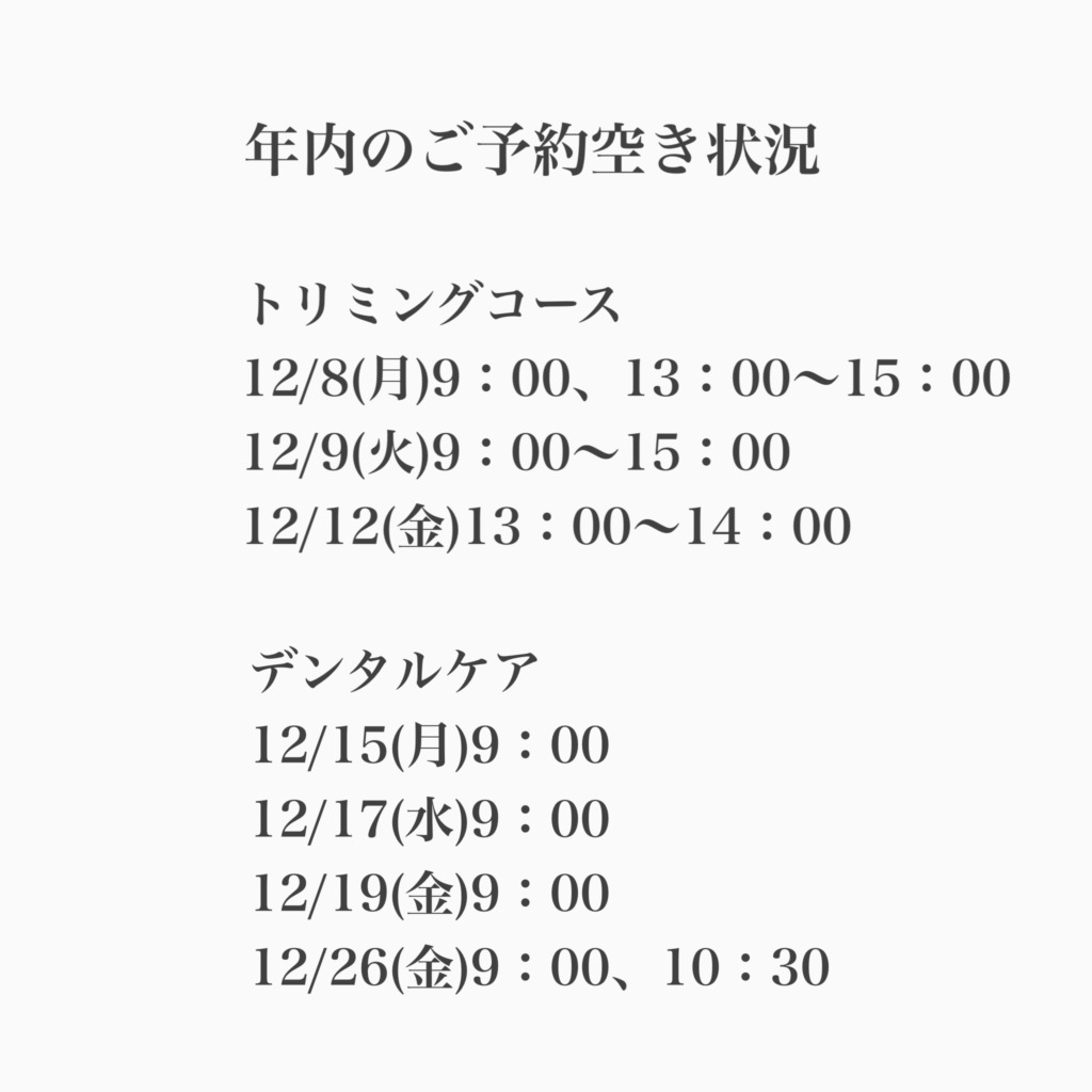 <ご予約>12月、1月の空き状況