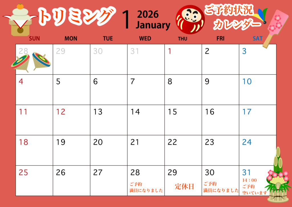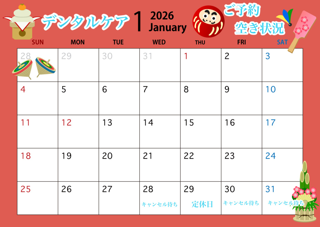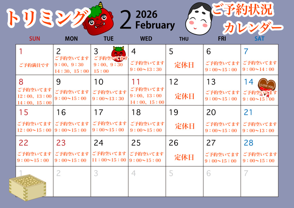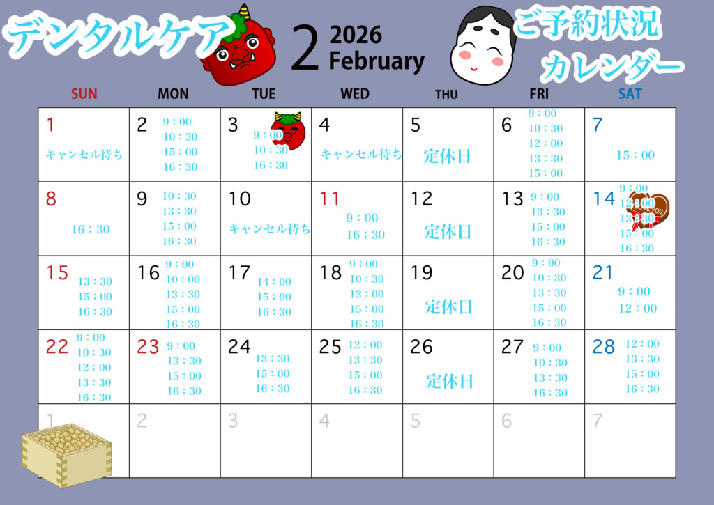 <2026年>1月、2月の予約空き状況