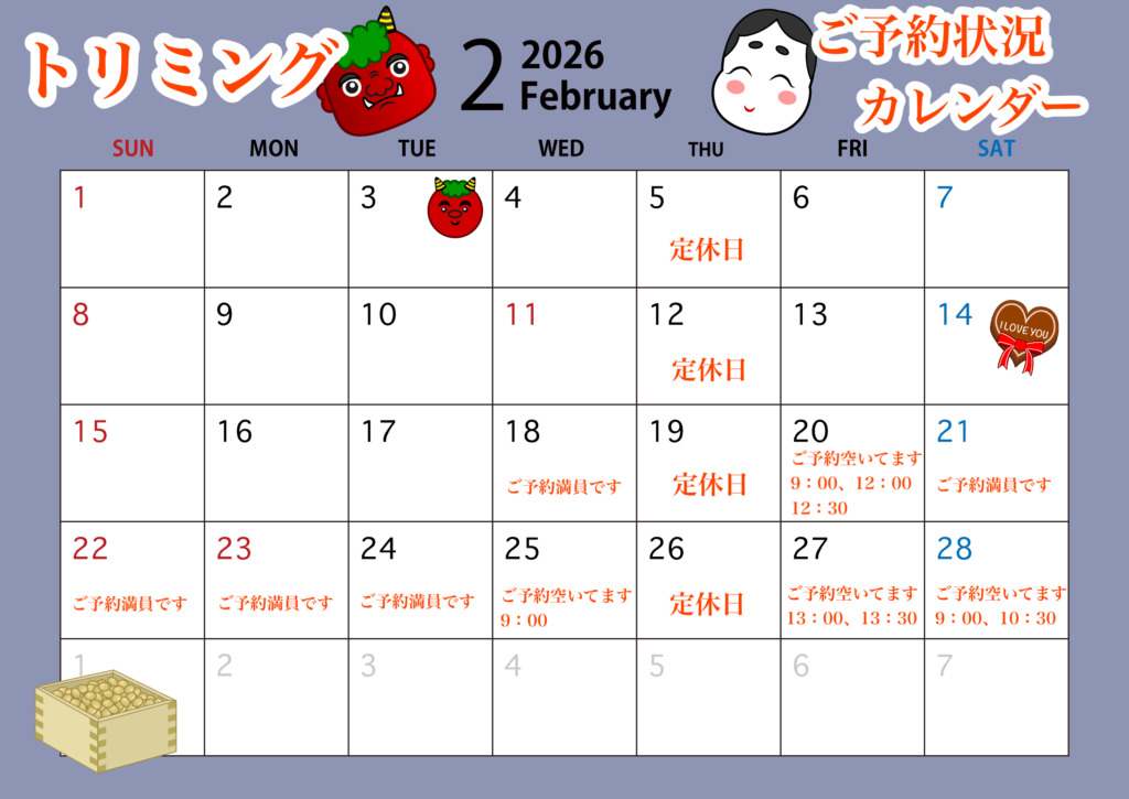 2月の予約空き状況はこちら