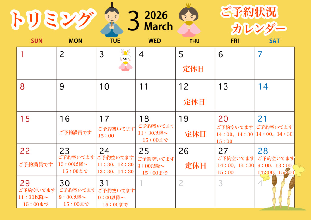 3月のご予約状況のご案内です