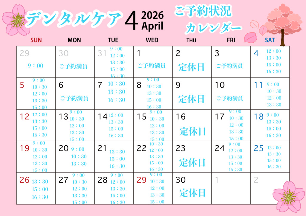 4月のご予約状況のご案内です